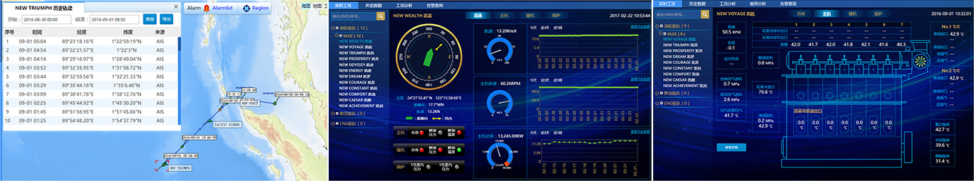 ◆ 采用可視化的海圖、工況、虛擬儀表、統計圖表等形式展現,應用簡單、用戶界面直觀、視覺效果好,傳遞的信息量大。
